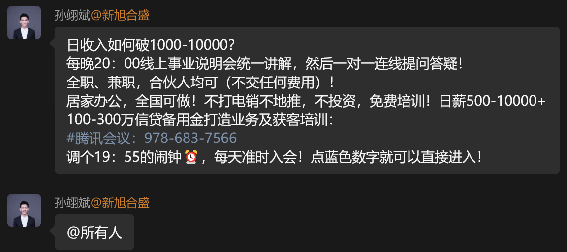 月入10万等着你!年薪百万等着你! 🔥 努力的人,永远不会被辜负! 开单不是运气,是日复一日的积累;团队共赢不是口号,是彼此信任的成果。 数据孵化实战派带队,不画大饼只做实事,从方法到资源全程支持! 现在加入,和一群有野心、肯实干的人并肩,每一份付出都有回报,收入越来越可观,未来一片光明✅ #腾讯会议:978-683-7566 调个19:55的闹钟⏰,每天准时入会!点蓝色数字就可以直接进入!